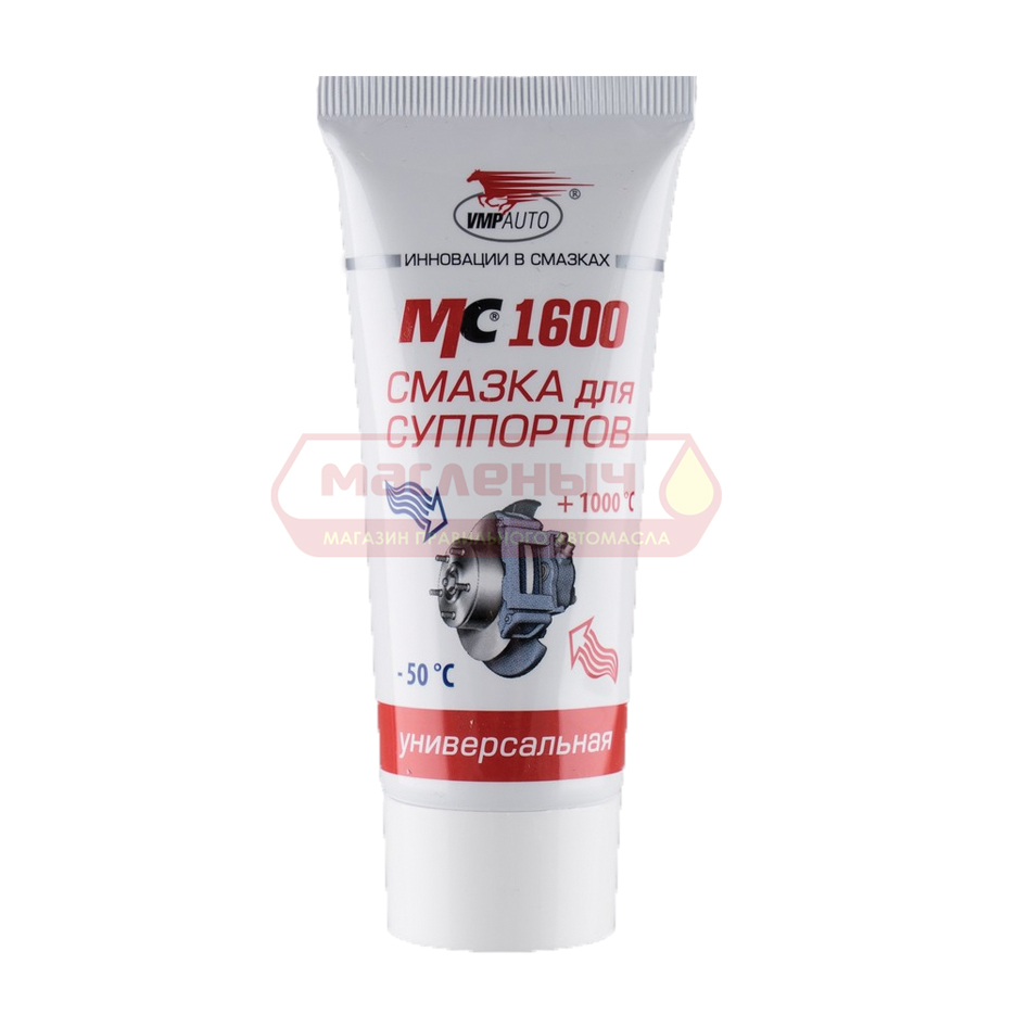 Смазка МС 1600 – это высокотемпературная смазка для обслуживания тормозных систем любых автомобилей. Обеспечивает подвижность деталей суппорта, равномерный износ колодок, сокращает тормозной путь. Увеличивает эффективность и безопасность торможения. Универсальная. Устраняет скрип тормозов.