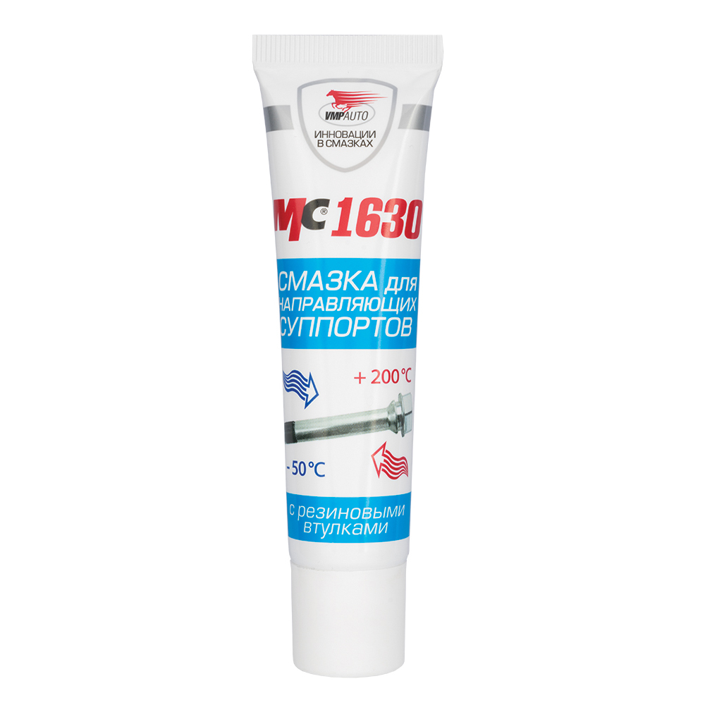 Новая смазка МС 1630 отлично подходит для смазывания направляющих суппорта, в том числе с резиновыми втулками. Температурные и вязкостные характеристики позволяют смазке работать в экстремальных условиях – от -50⁰С до +200⁰С. МС 1630 защищает от залипания, закоксовывания и присыхания направляющих, обеспечивая равномерный износ колодок и безопасное торможение. Специальная формула не оказывает воздействия на резиновые втулки направляющих, продлевая срок их службы.