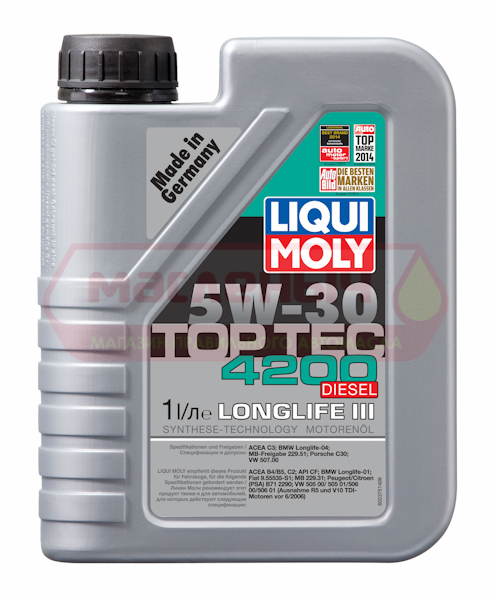 Масло моторное Liqui Moly Top Tec 4200 Diesel New Generation, 5W-30, 1 л, НС-синтетическое LIQUI MOLY 2375