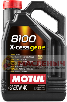Высокотехнологичное 100% синтетическое моторное масло, специально разработано для современных бензиновых и дизельных двигателей легковых автомобилей, обладающих большой мощностью и объемом, т.ч. оснащенных турбонаддувом и непосредственным впрыском. MOTUL 8100 X-cess gen2 5W-40 имеет одобрения автопроизводителей, что позволяет применять его и в гарантийный период обслуживания. Предназначено для двигателей, работающих на любом типе топлива: бензин, дизельное топливо, сжиженный нефтяной газ (LPG), этанол, биодизель. Совместимо с каталитическими конверторами.