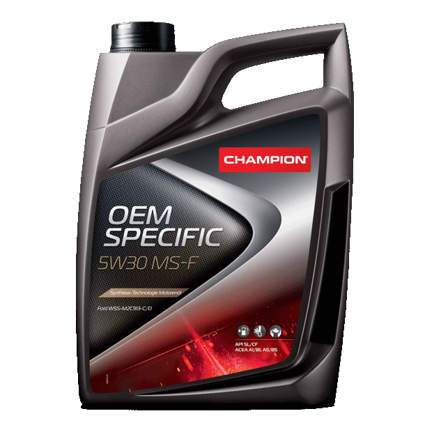 Champion OEM Specific 5W-30 MS-F A1/B1 A5/B5 SL/CF полностью синтетический смазочный материал, созданный на основе тщательно отобранных высококачественных базовых масел. Champion OEM Specific 5W-30 MS-F A1/B1 A5/B5 SL/CF специально разработано по требованиям спецификации Ford WSS-M2C913-C/D. Champion OEM Specific 5W-30 MS-F A1/B1 A5/B5 SL/CF характеризуется значительно улучшенной смазывающей способностью и обеспечивает экономию топлива (>3%). Champion OEM Specific 5W-30 MS-F A1/B1 A5/B5 SL/CF заменяет спецификацию M2C-913-A/B.