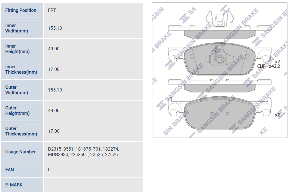 Колодки тормозные SANGSIN SP4054 SANGSIN sp4054